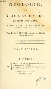 Mise en ligne du dictionnaire néologique de Louis Sébastien Mercier, paru en 1801 : index et moteur de recherche.